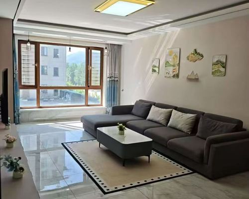龙宝国际,电梯八楼,面积93.25平,两室一厅,75寸电视,林氏沙发,恒洁马桶,不要暖气23/24℃